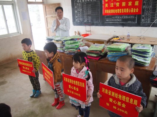 今年,河南省测绘地理信息局广大干部职工为该局扶贫帮扶村固始县李店镇刘营村捐款63202元,六一儿童节前夕,局党委派工作组赴刘营村,开展扶贫村少年儿童公益活动。