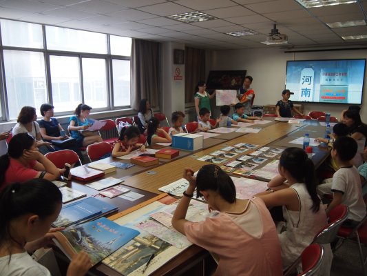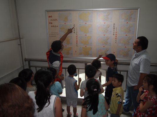 按照省文明办和省直文明办《关于组织开展“做志愿表率为党旗增辉——全省党员志愿者进社区集中服务月”活动的通知》,为了做好社区志愿服务工作,同时是省测绘地理信息局和花园路办事处戊院社区党建共建工作的一项内容,7月12日下午,省测绘地理信息局和戊院社区共同组织社区近20名中小学生到省地图院参观,开展暑期大课堂,进行地图知识科普宣传。孩子们先从地图院大厅摆放的大型地球仪开始,接着观看了一楼至四楼有关地图发展(变迁)历史的图片。从远古时期有关“规、矩”的记载,到夏商周时代的测时仪器“土圭”,春秋战国时期的“司南”,三国时期的“计里鼓车”和“指南车”,这些早期的测量、测绘工具,给大家留下了深刻的印象;接下来的《西夏地形图》,明朝时期的《东西两半球图》,清朝时期的《乾隆内府皇舆全图》,中华民国时期早期制作的“地形图”,直到后来新中国成立制作的“中华人民共和国行政区划图”,这些关于地图发展变迁的历史,丰富了孩子们关于地图历史的知识;展示的这些各个不同时期关于中国的地图,更一步强化了孩子们关于国家的版图意识。之后,大家又来到会议室观看了关于省地图院发展的宣传片,更近距离的接触了全开地图挂图、32开地图集等各类地图产品,还赠送每个孩子一张精美的地图小礼品。在活动的最后,孩子们在工作人员的指引下,参观了地图印刷车间和地图销售部,看到了巨大的地图印刷机,一张张印制好的地图,以及各式各样、不同种类的销售地图。此次活动,在学习之余开阔了孩子们的眼界,丰富了孩子们的假期生活。