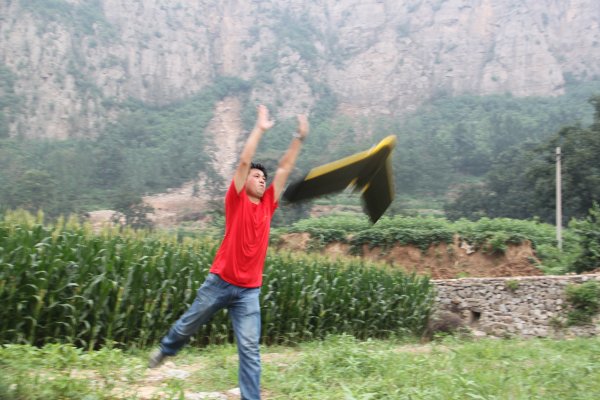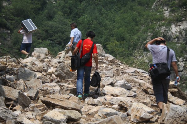 7月28日上午,小分队赶到安阳和当地有关部门领导及抗洪救灾办公室同志做了简单沟通,圈定了航飞的范围后,得知山区仍有三个村庄道路、水电、通信不通,形成孤岛状态,立即请缨承担了这项艰巨的任务。随后兵分两路,一路留在安阳采用固定翼无人机对240多平方公里的滞洪区进行航飞。另一路则冒着40度的高温和碎石坠落、踩空坠崖等极度危险,背着沉重的仪器徒步攀行30多公里山路进入孤岛用ED手抛机对这三个村庄进行了航拍。