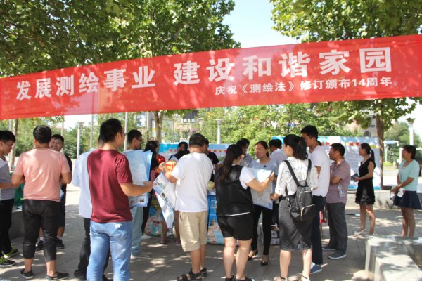 今年8月29日是全国《测绘法》修订颁布14周年纪念日,也是《地图管理条例》颁布实施的第一年。为搞好测绘法宣传活动,扩大测绘影响,巩义市国土资源局精心安排,提前一周组织市直各测绘资质单位悬挂宣传横幅,并于8月29日上午,在该市体育馆开展测绘法宣传活动。