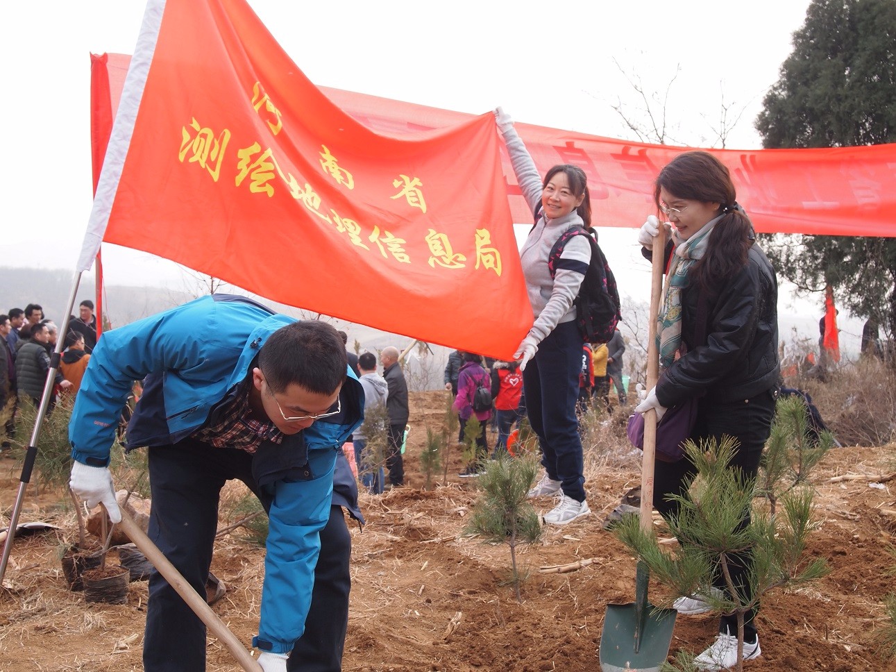 初春的嵩岳大地,一派生机盎然。3月10日,在第39个植树节来临之际,省测绘地理信息局党委委员、纪委书记何晨带领局机关和局属单位十余名志愿者来到登封市陈家门植树基地,参加了由省绿化办、省直绿化办和省直文明办组织的义务植树活动。