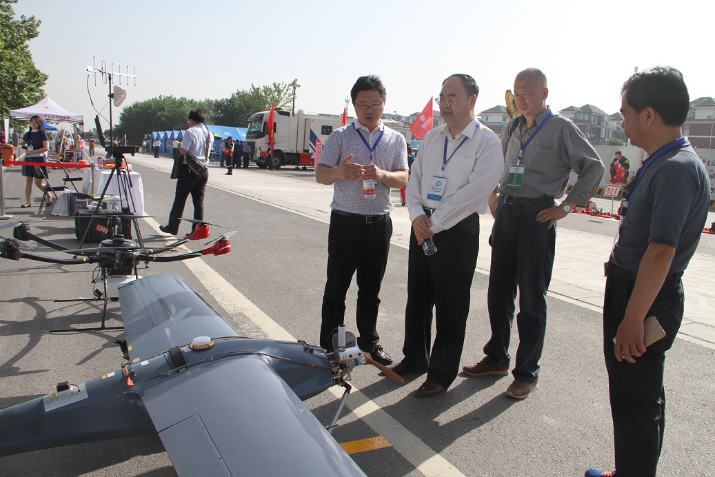 河南省民政厅党组书记、厅长鲍常勇在参观应急装备展示时,首先来到应急测绘保障服务无人机展示区,观摩了多旋翼、固定翼、手抛式等多种应急测绘无人机,观看了河南省应急测绘保障体系和“天地图”等展板,听取了关于测绘地理信息高新技术在防灾减灾中如何提供服务保障的简单介绍。特别是听到测绘地理信息技术在去年安阳重灾区的灾害评估中发挥了重要作用时,不时地颔首称赞。省地震局、省水利厅、省气象局等多家单位参会领导来到展示区,主动了解应急测绘保障服务相关内容。