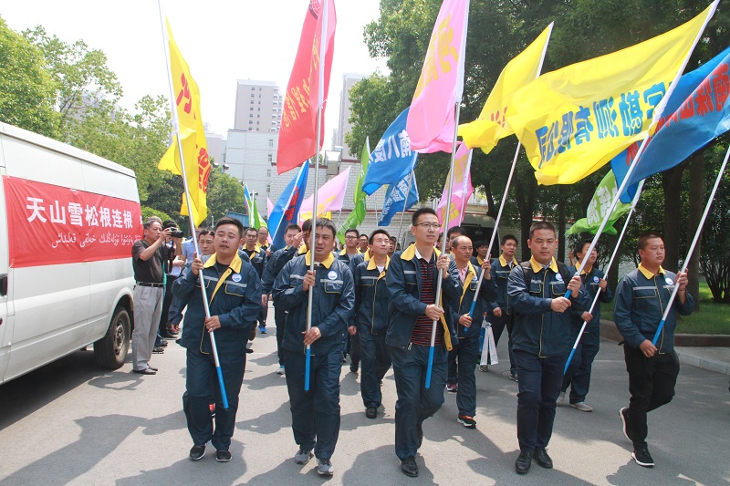 河南省测绘援疆突击队长挥舞队旗