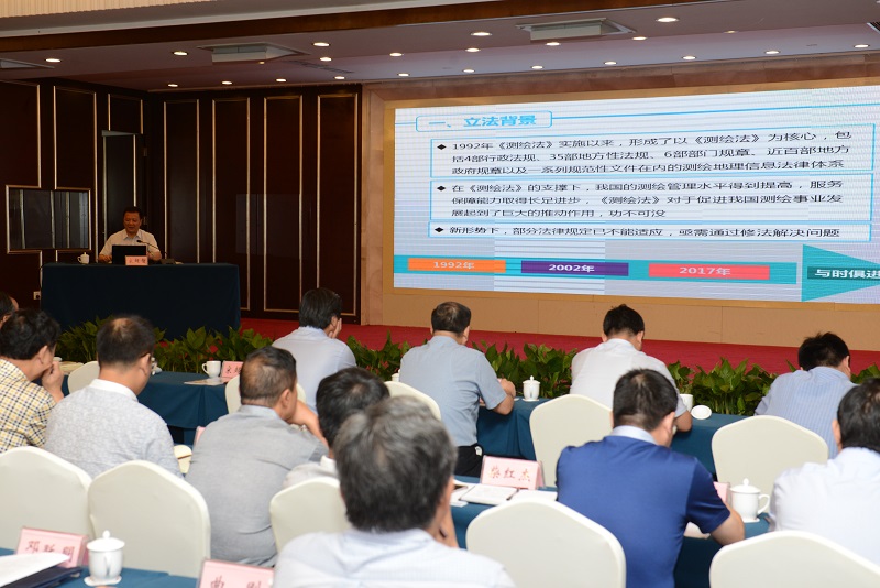 宋超智从立法背景、法律规定、贯彻实施三个方面对新《测绘法》进行了全面解读,总结了当前测绘地理信息法律制度体系建设取得的成绩,强调了新《测绘法》的新精神、新规定、新要求,明确点出了新《测绘法》对国家、省、市、县各级政府和测绘地理信息主管部门的职能职责要求。宋超智强调,河南省各级测绘地理信息主管部门和企事业单位领导、干部职工一定要认真贯彻落实习近平总书记依法治国的理念,充分认识《测绘法》修订的重大意义,全面贯彻实施新《测绘法》,以新《测绘法》为引领,加快推动河南省测绘地理信息事业的改革创新发展,以优异的成绩迎接十九大的召开。
