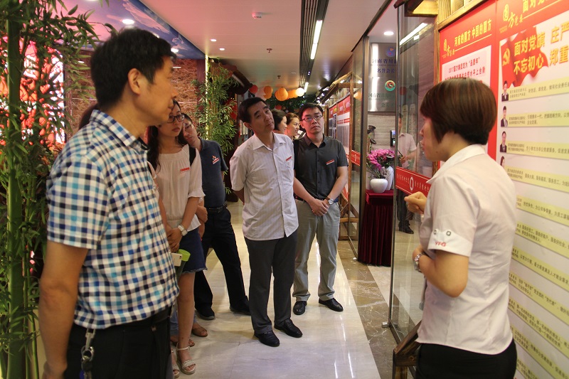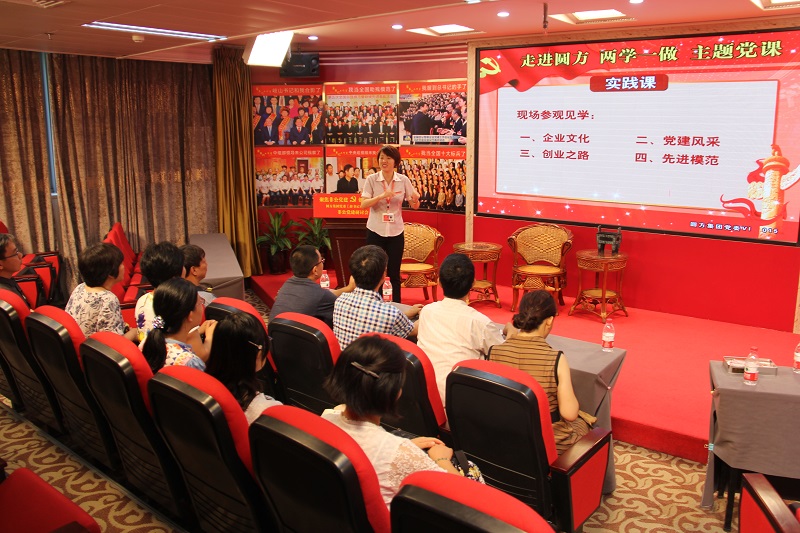 经过工作人员讲解,了解了河南圆方集团董事长、党委书记----薛荣,她从擦油烟机、当保姆、做“蜘蛛人”起,一步一个脚印,一步一个深深脚窝的动人故事,让在场的同志们为之赞叹。薛荣女士被组织上发展为中共党员,随着企业公司的发展,从基层党支部发展为集团党委,她也一步一个脚印逐步走上了党委书记的岗位。薛荣女士对党建的热情和投入----既然要建党组织,就要真建,满怀热情去建。她开通了圆方党建网站,印发了《圆方党建风采》,《圆方文化》宣传非公党建,成立《薛书记有约》工作室,录制《薛书记讲党史》在优酷网播放,录制《薛书记今日播报》微信语音。最后全国优秀党务工作者、河南圆方集团党委书记薛荣与中心党委书记交流了党建工作的经验做法和重要性,并与大家合影留念。