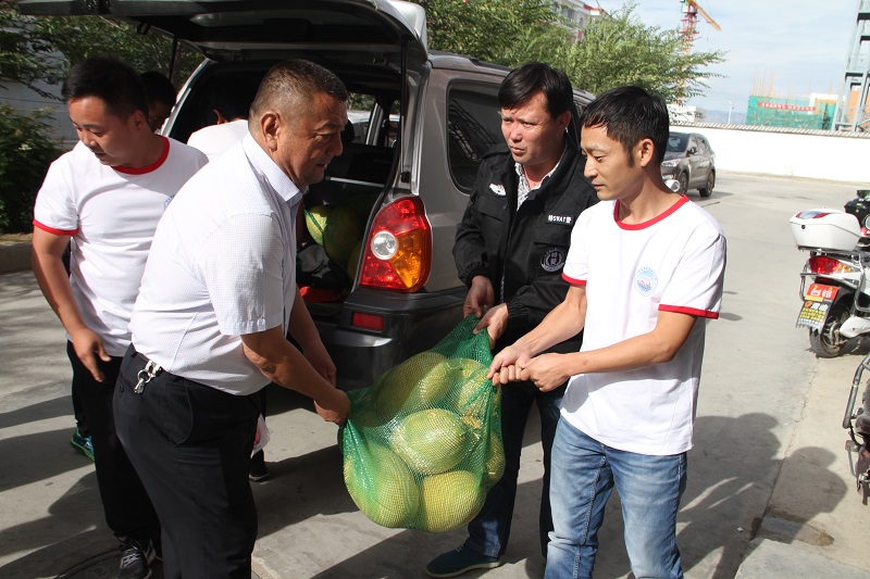 “没事,这些都是我们应该做的,你们来帮我们测量,我们肯定是要为你们提供最好的服务和最及时的后勤保障。我们要像石榴子一样紧紧地抱在一起,这样才可以做好测绘援疆工作嘛!”哈密市国土资源局副局长尼亚孜·艾买提一边为突击队队员切着哈密瓜,一边笑着说。半个多月的时间里,尼亚孜•艾买提一行驱车1000多公里,先后两次看望并慰问三个测区的突击队员,并送去了米、面、油等生活用品,以及新鲜的西瓜和哈密瓜等水果。