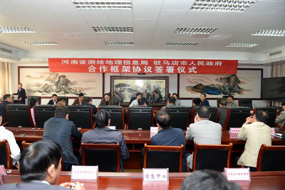 为贯彻落实党的十九大精神,保障河南省测绘地理信息发展的能力和水平进一步提升,11月1日,河南省测绘地理信息局与驻马店市人民政府在驻马店市签订加快地理信息产业发展合作协议。河南省国土资源厅党组成员、省测绘地理信息局局长、党委书记刘济宝,驻马店市人民政府副市长王明威参加会议并讲话,河南省测绘地理信息局党委委员、纪委书记何晨,党委委员、副局长毛忠民、宋新龙,省局有关处室及直属单位负责同志,驻马店市人民政府相关负责人,驻马店市国土资源局全体班子成员,驻马店市住建、公安、工信、农业、林业、水利、旅游、应急办等局委有关人员参加签约仪式。