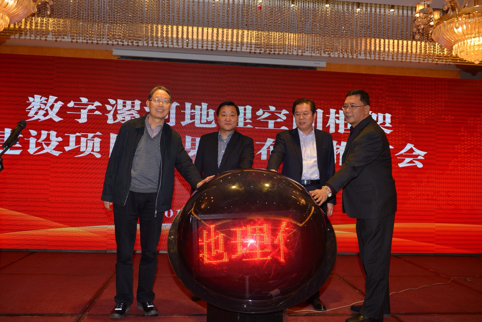 刘济宝局长、徐汇川副市长、李小建院士和漯河市国土资源局局长王喜成共同开通数字漯河地理信息公共服务平台