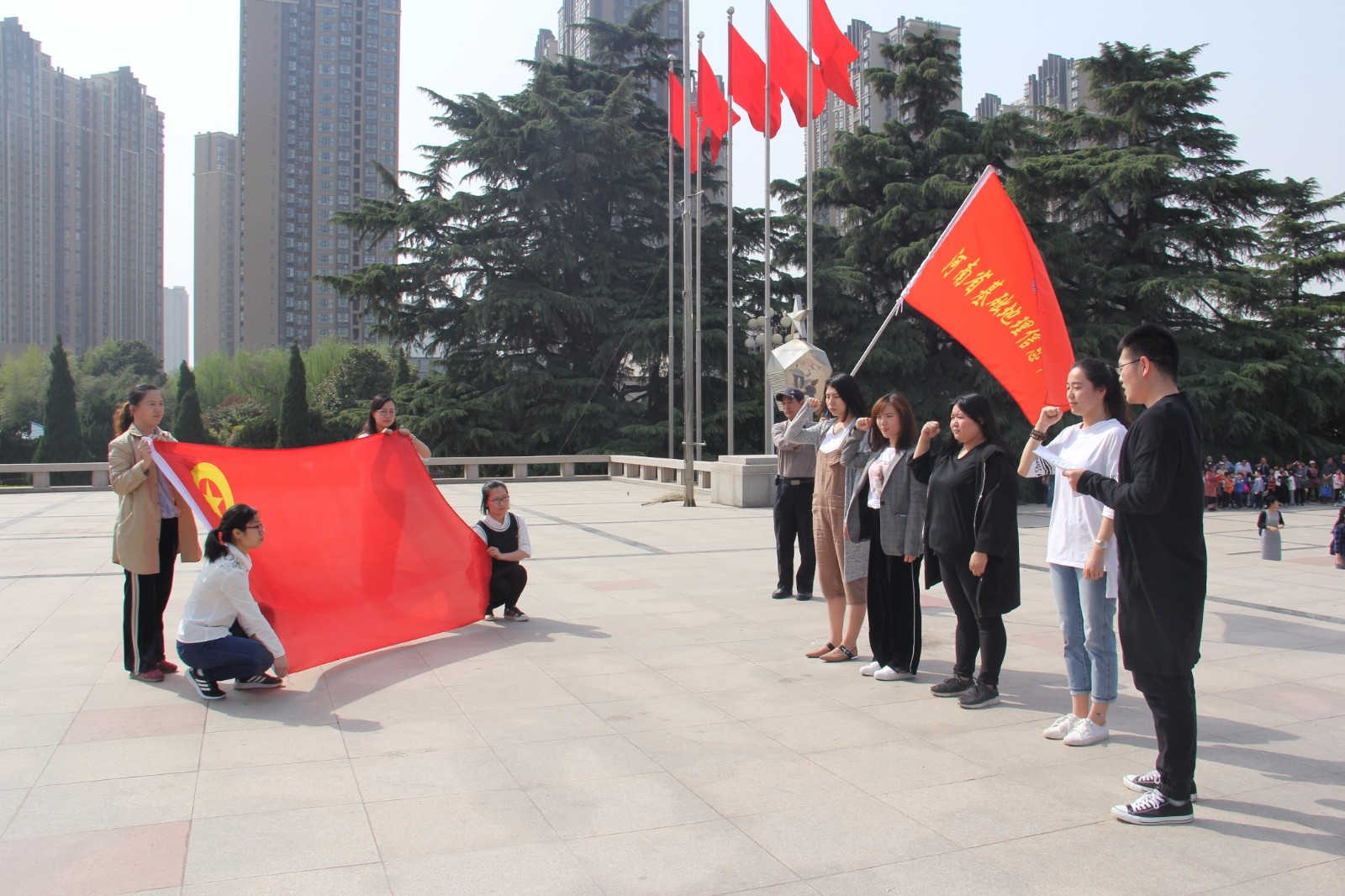 在庄严与肃穆的氛围下,全体人员怀着对先烈们无限崇敬的心情向烈士默哀鞠躬,向英雄纪念碑敬献花篮,重温入党、入团誓词。参加活动的同志们还参观了中原英烈纪念馆,凭吊忠魂,寄托对先烈们的无限敬意和绵绵哀思。
