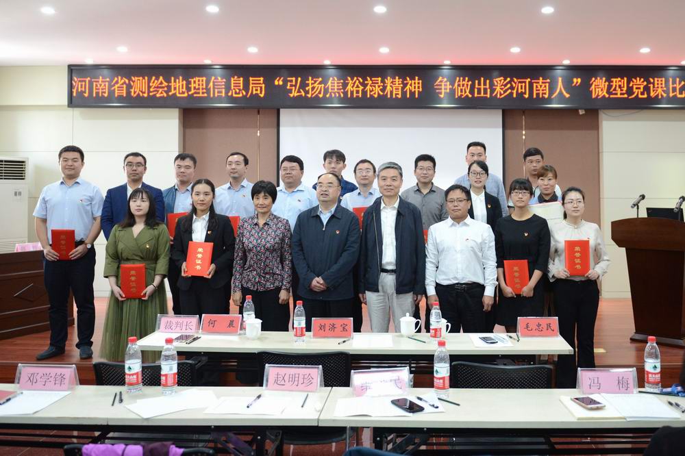 为全面深入学习贯彻党的十九大精神和习近平总书记调研指导河南时的重要讲话,认真贯彻落实省委十届六次全会精神,引导广大党员干部树立“四个意识”,大力弘扬焦裕禄精神,9月29日,河南省测绘地理信息局举行“弘扬焦裕禄精神 争做出彩河南人”微型党课比赛。河南省国土资源厅党组成员,省测绘地理信息局党委书记、局长刘济宝高度重视,亲临现场观看比赛。局党委委员、纪委书记何晨参加会议并讲话,局党委委员、副局长毛忠民到场观看比赛。局属各单位、局机关各处室干部职工代表100余人一起聆听了精彩的党课。