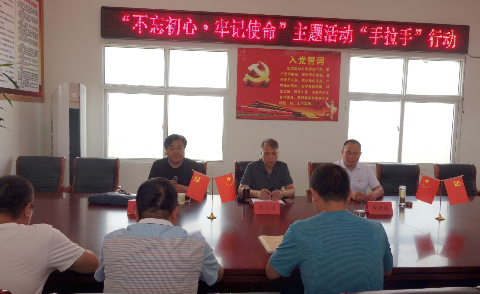 7月10日下午,河南省地图院人事教育科和办公室负责人同帮扶人员一行4人,到固始县李店镇刘营村开展结对帮扶工作,并召开“不忘初心、牢记使命”主题教育结对共建“手拉手”活动座谈会,并带去了主题教育辅导材料。驻村第一书记孙常建、刘营村党支部书记祁远俊及驻村工作队员参加了座谈。