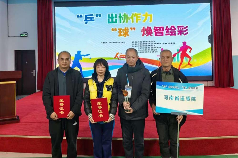 12月13日,由河南省地理信息产业协会地理信息文化体育工作委员会主办的“地信杯”乒乓球邀请赛在郑州举行,来自河南省遥感院、黄河勘测规划设计研究院有限公司、河南省水利勘测设计研究有限公司、河南省水利勘测有限公司、河南省测绘院等九家单位的乒乓好手同台竞技。经过激烈角逐,河南省遥感院乒乓球队取得团体季军的佳绩。