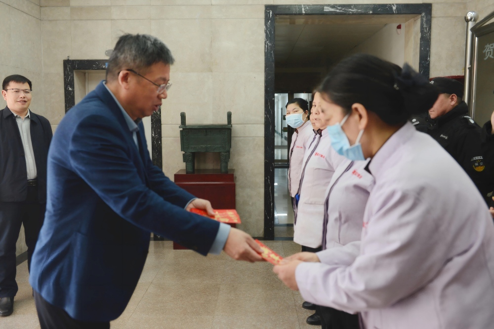 慰问现场,肖锋与物业一线职工亲切交谈,详细询问节日期间值班值守、人员安排及应急处置准备情况,细致了解职工工作强度、生活保障及防寒保暖等实际需求,对大家坚守岗位、履职尽责的敬业精神给予高度肯定,对全体物业职工的辛勤付出表示衷心感谢,并送上慰问金。